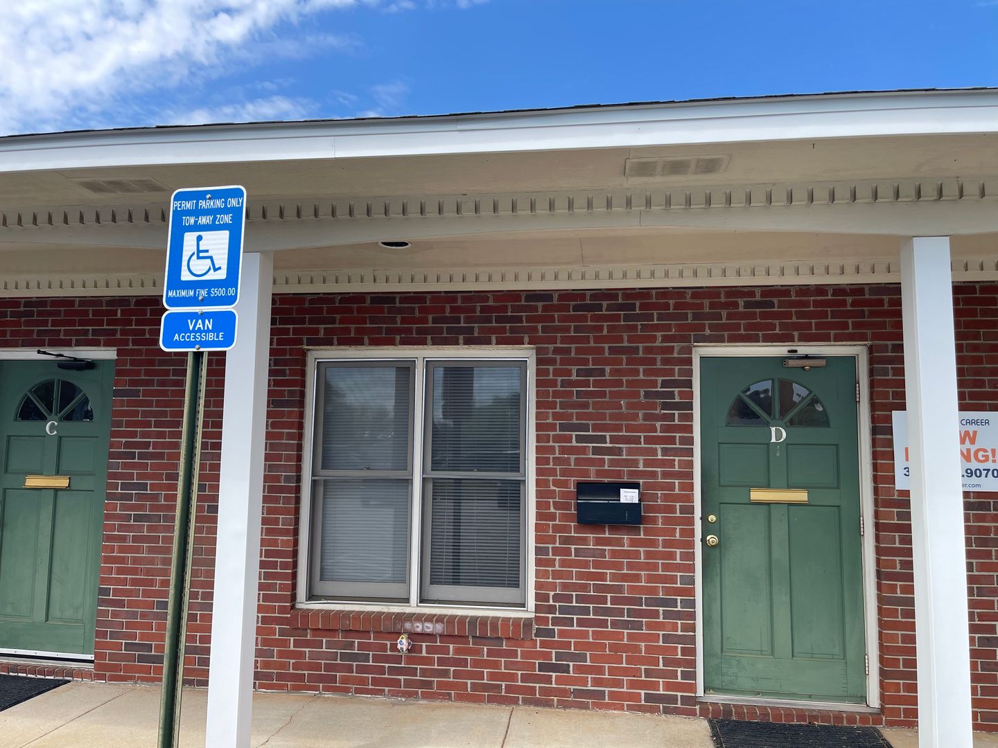 Small office space with Electricity and water included. Centrally located across from the Lee County Justice Center, Tigertown and I-85.